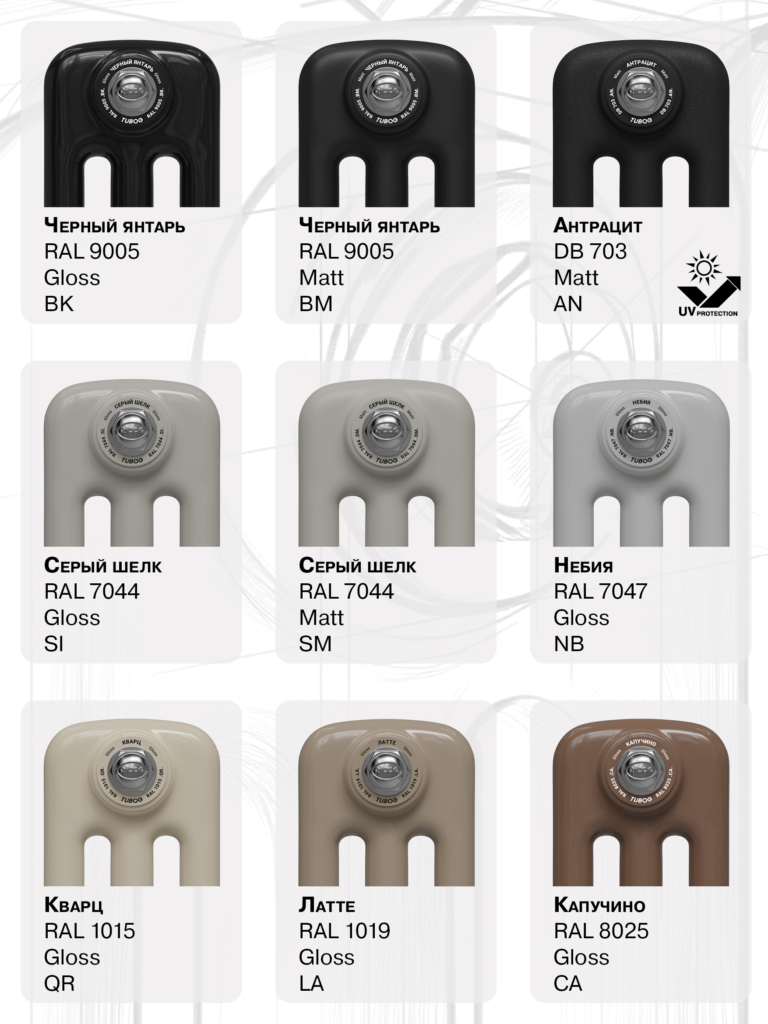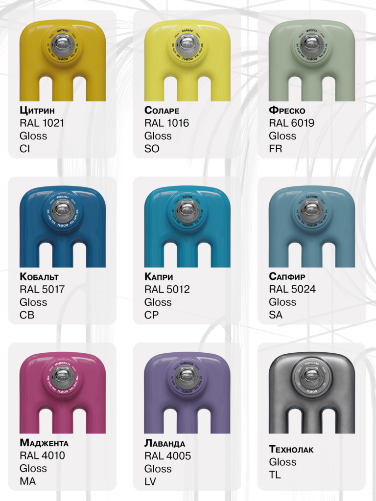 Представляем вам расширенную цветовую палитру для радиаторов TUBOG. Новая цветовая палитра включает в себя 37 ярких и насыщенных оттенков для окраски радиаторов порошковыми эмалями. Самым важным аспектом этого события можно назвать то, что это теперь стандартные цвета, которые выбраны в качестве штатной цветовой гаммы. Это значит время ожидания своего TUBOG существенно снизилось!